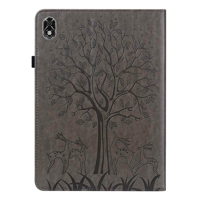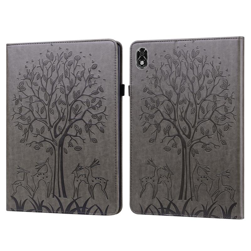 For Lenovo Legion Y700 Tree & Deer Pattern Pressed Printing Leather Tablet Case(Grey)