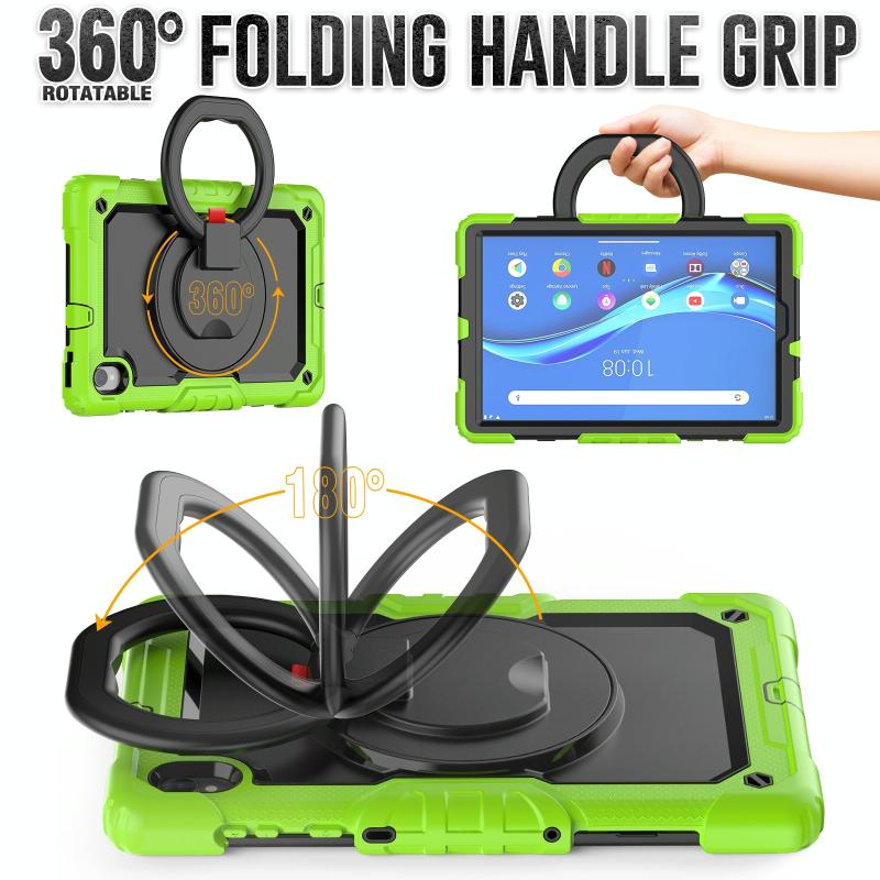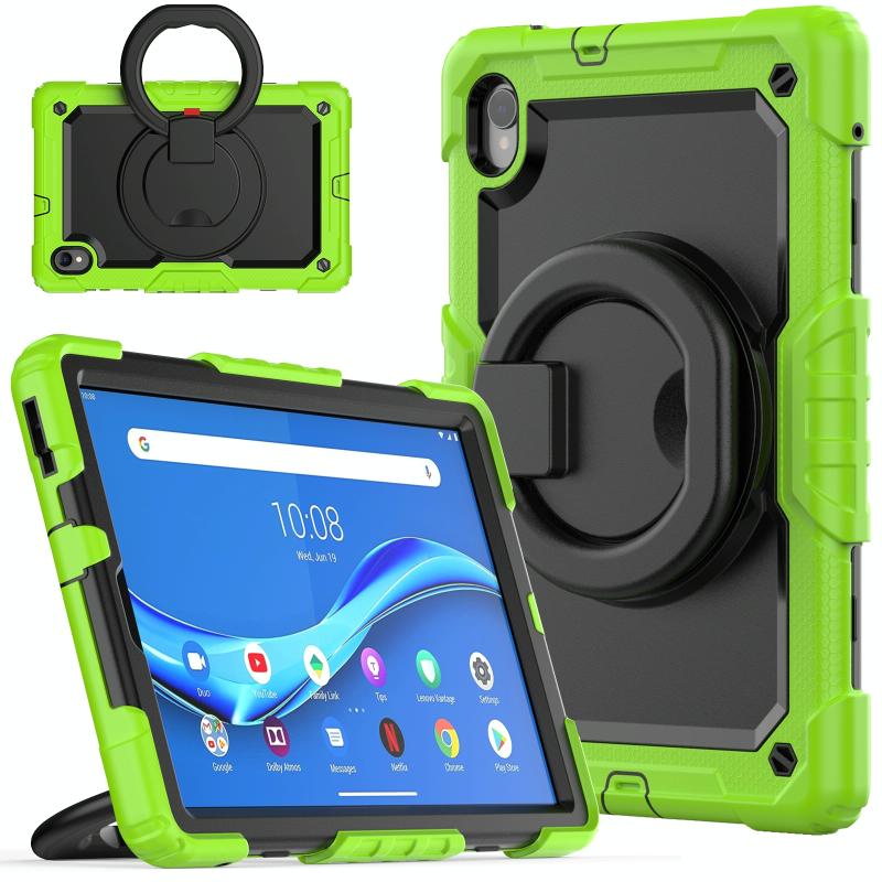 For Lenovo M10 Plus X606F Silicone + PC Holder Tablet Case(Yellow Green+Black)