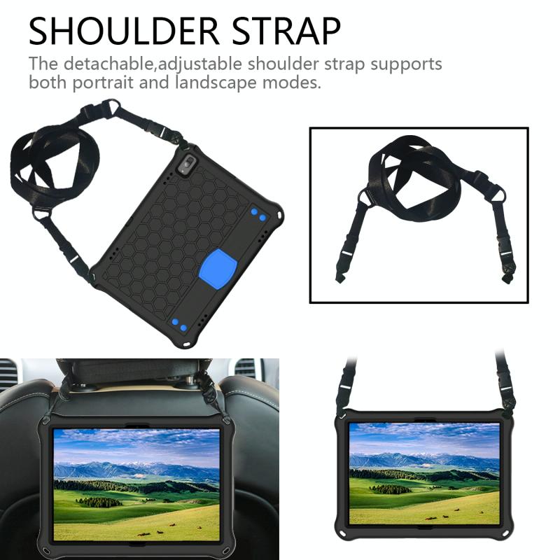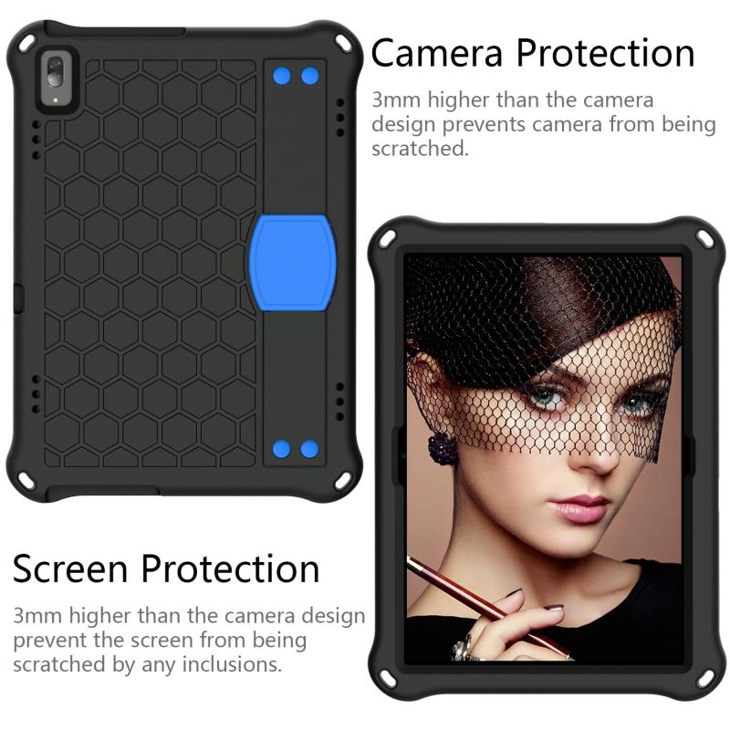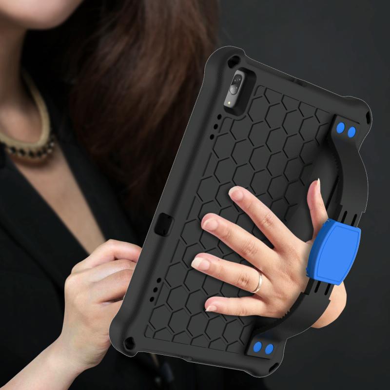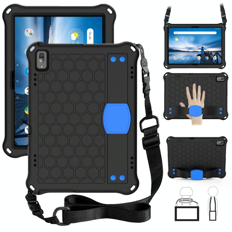 For Lenovo Smart Tab M10 TB-605F Honeycomb Design EVA + PC Material Four Corner Anti Falling Flat Protective Shell with Strap(Black+Blue)