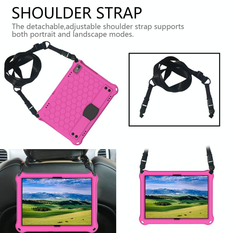 For Lenovo Tab E10 TB-X104F Honeycomb Design EVA + PC Material Four Corner Anti Falling Flat Protective Shell with Strap(Rose Red+Black)
