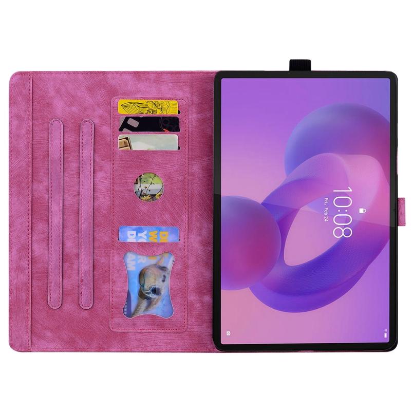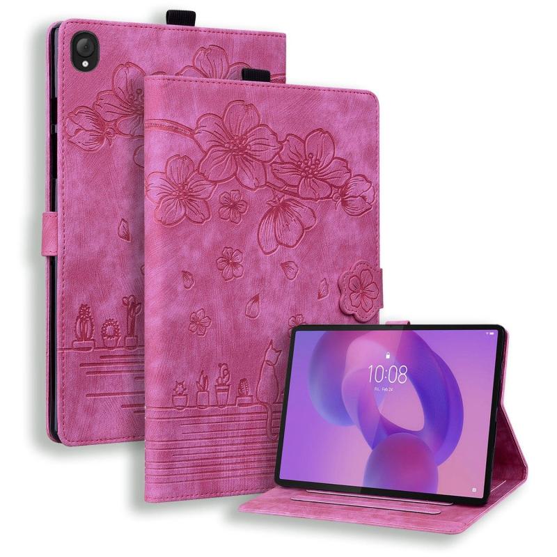 For Lenovo Tab K10C / E10C Cartoon Sakura Cat Embossed Leather Tablet Case(Rose Red)