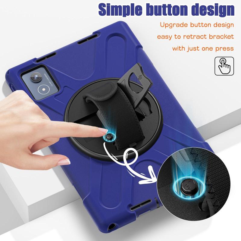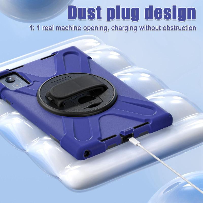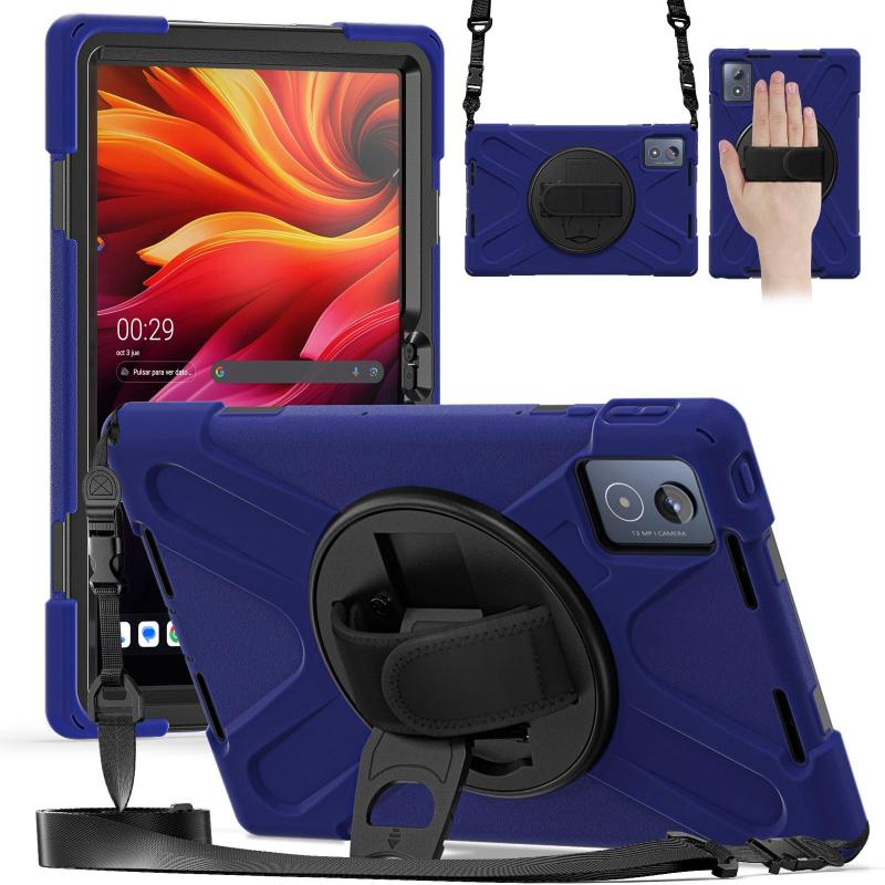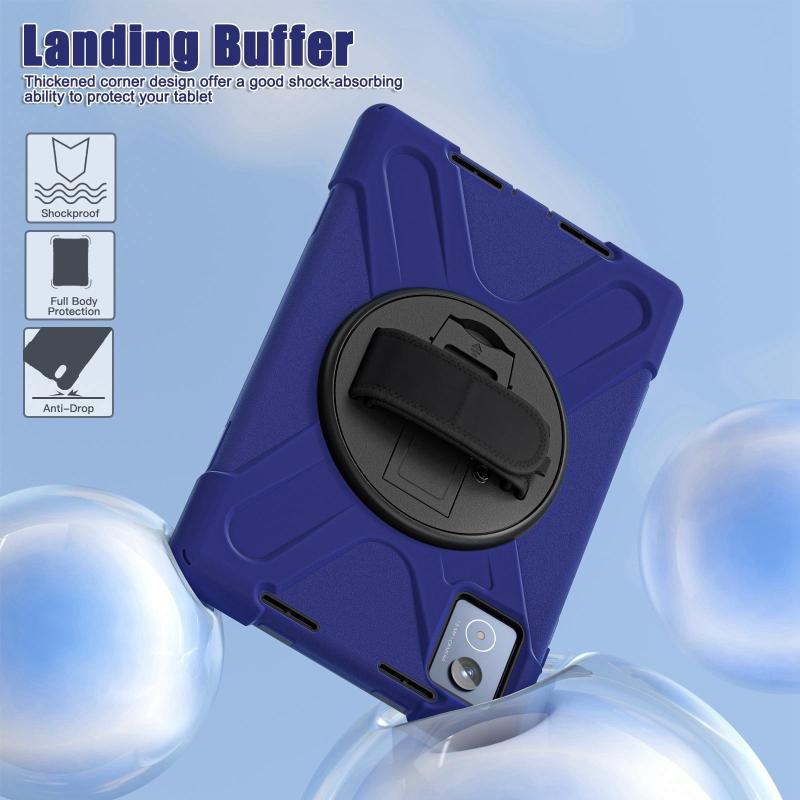For Lenovo Tab K11 Plus Rotatable Holder Silicone Hybrid PC Tablet Case with Shoulder Strap(Navy Blue)