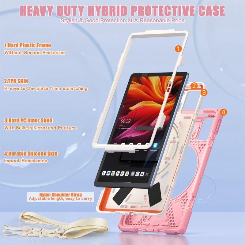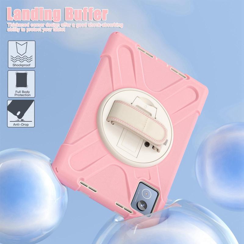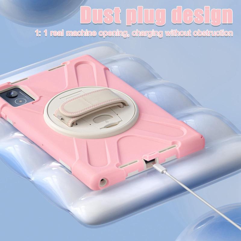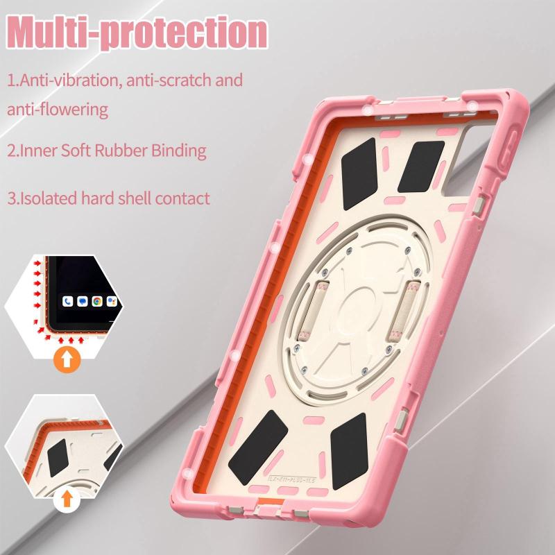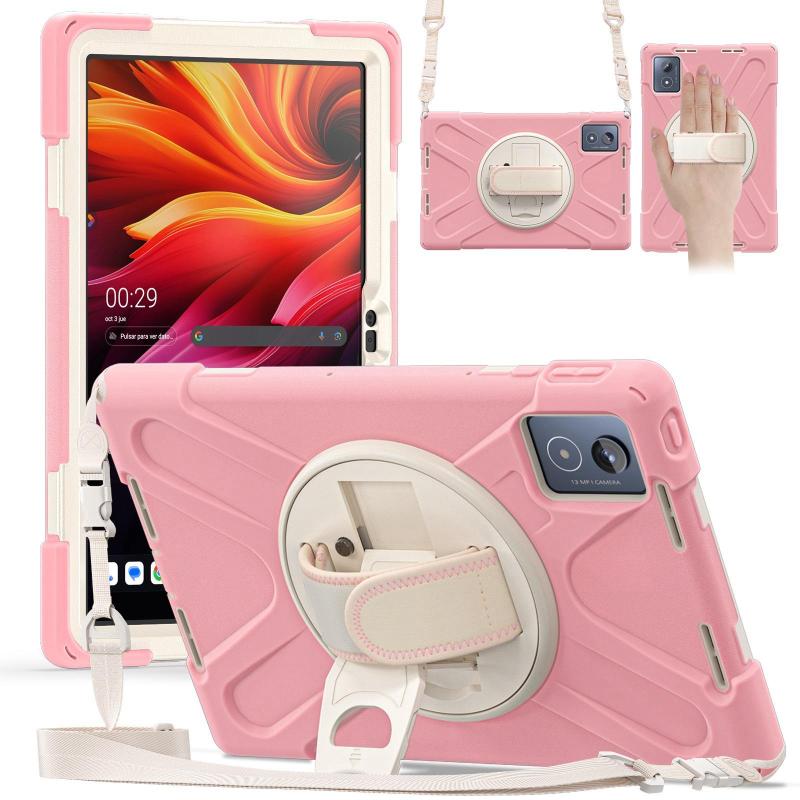 For Lenovo Tab K11 Plus Rotatable Holder Silicone Hybrid PC Tablet Case with Shoulder Strap(Pink)