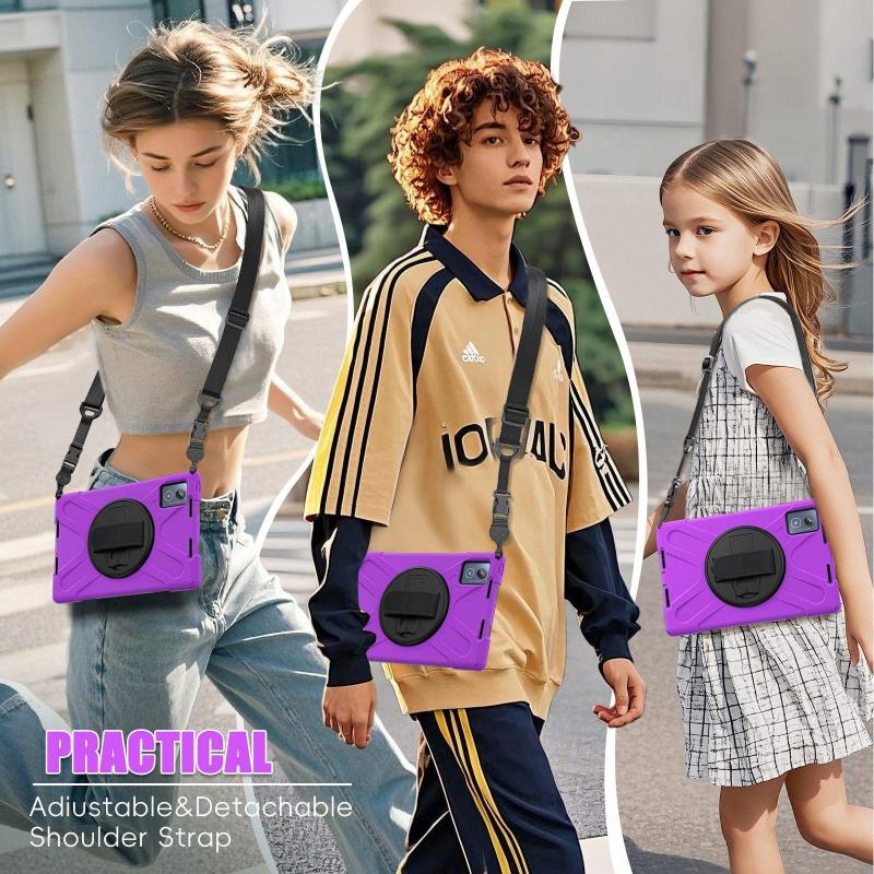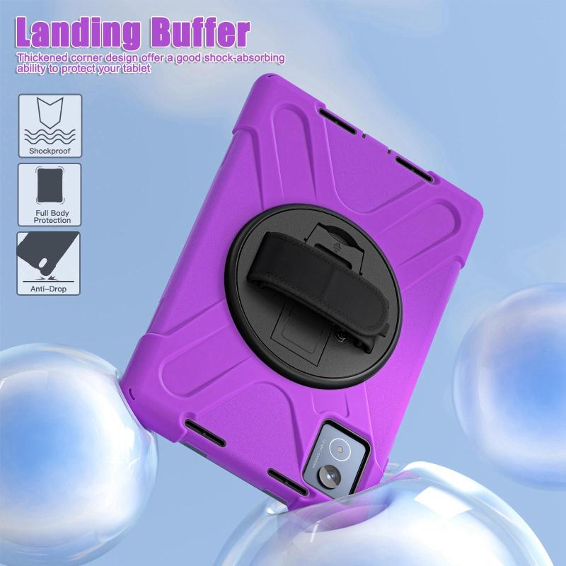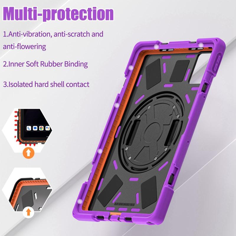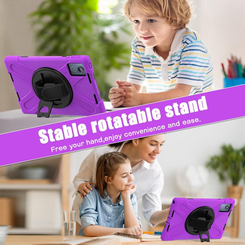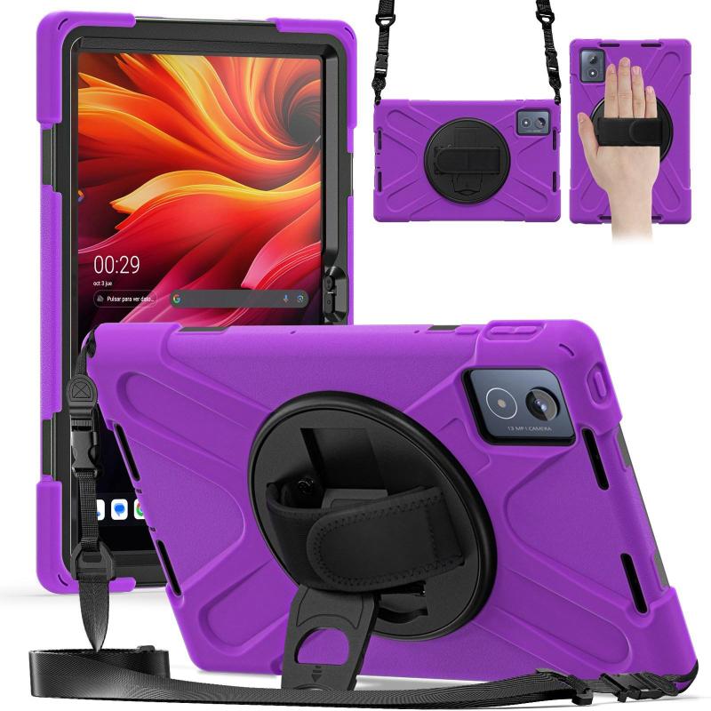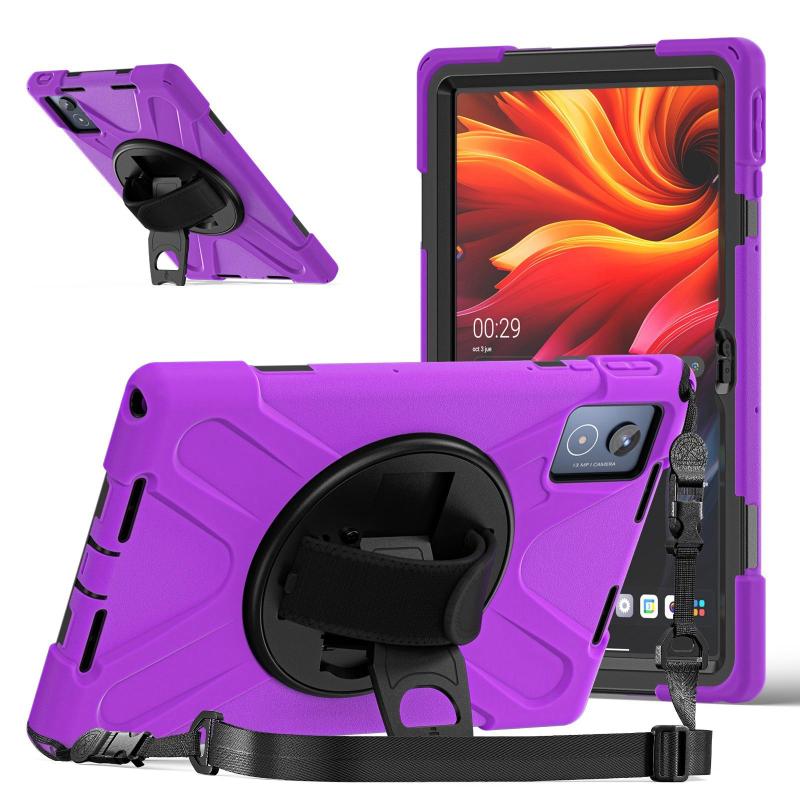For Lenovo Tab K11 Plus Rotatable Holder Silicone Hybrid PC Tablet Case with Shoulder Strap(Purple)