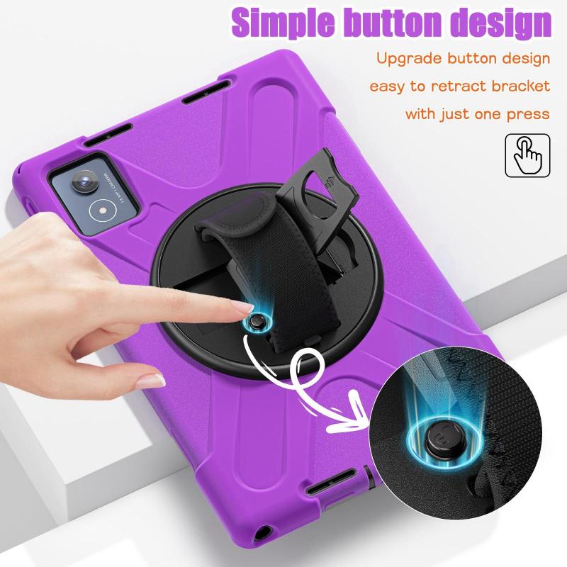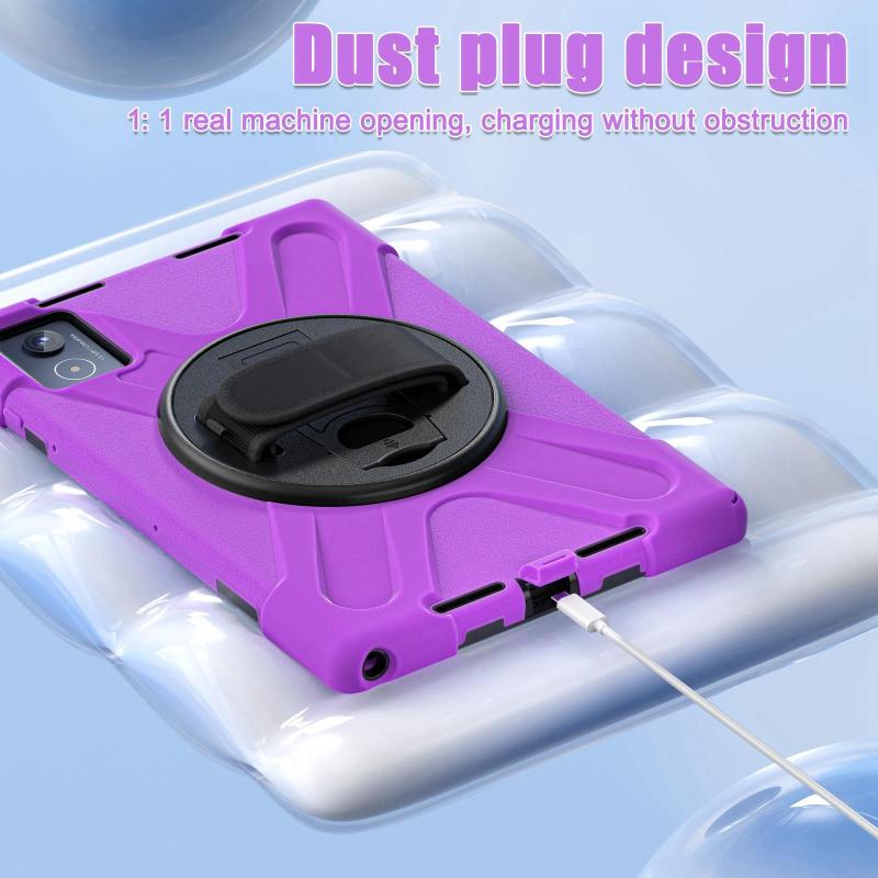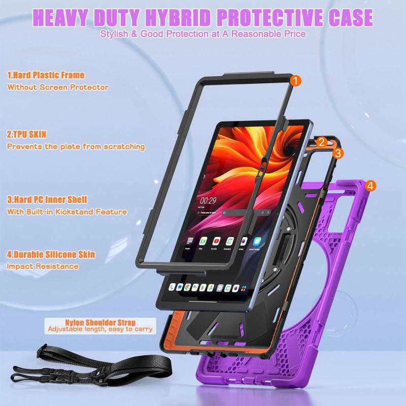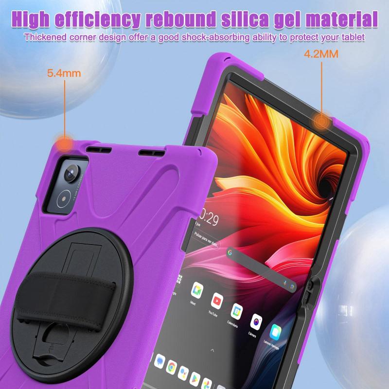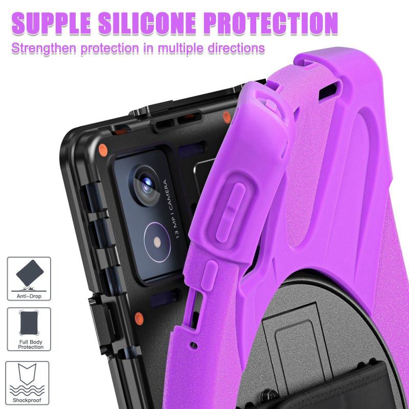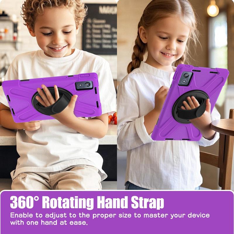 For Lenovo Tab K11 Plus Rotatable Holder Silicone Hybrid PC Tablet Case with Shoulder Strap(Purple)