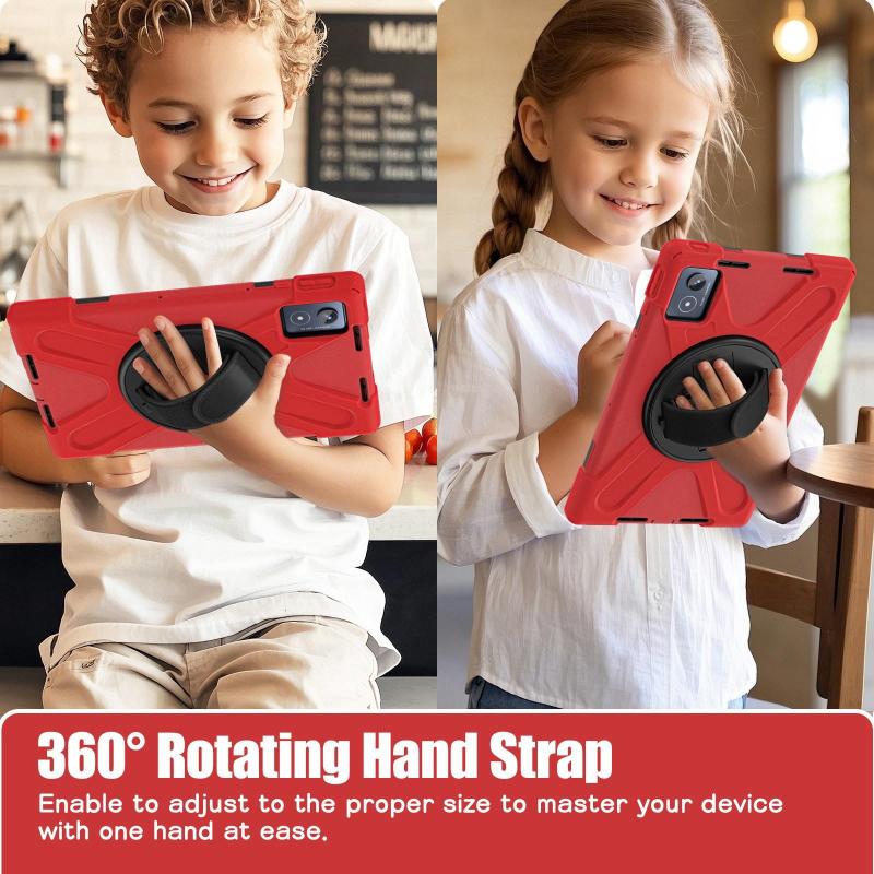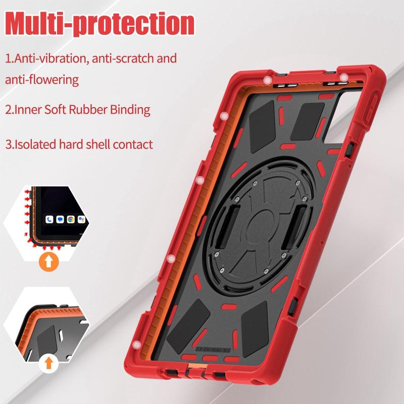 For Lenovo Tab K11 Plus Rotatable Holder Silicone Hybrid PC Tablet Case with Shoulder Strap(Red)