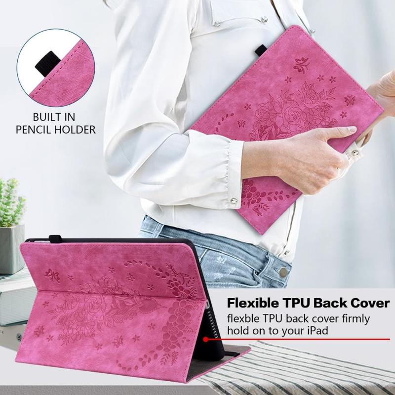 For Lenovo Tab K9 / Tab One Butterfly Rose Embossed Leather Tablet Case(Rose Red)