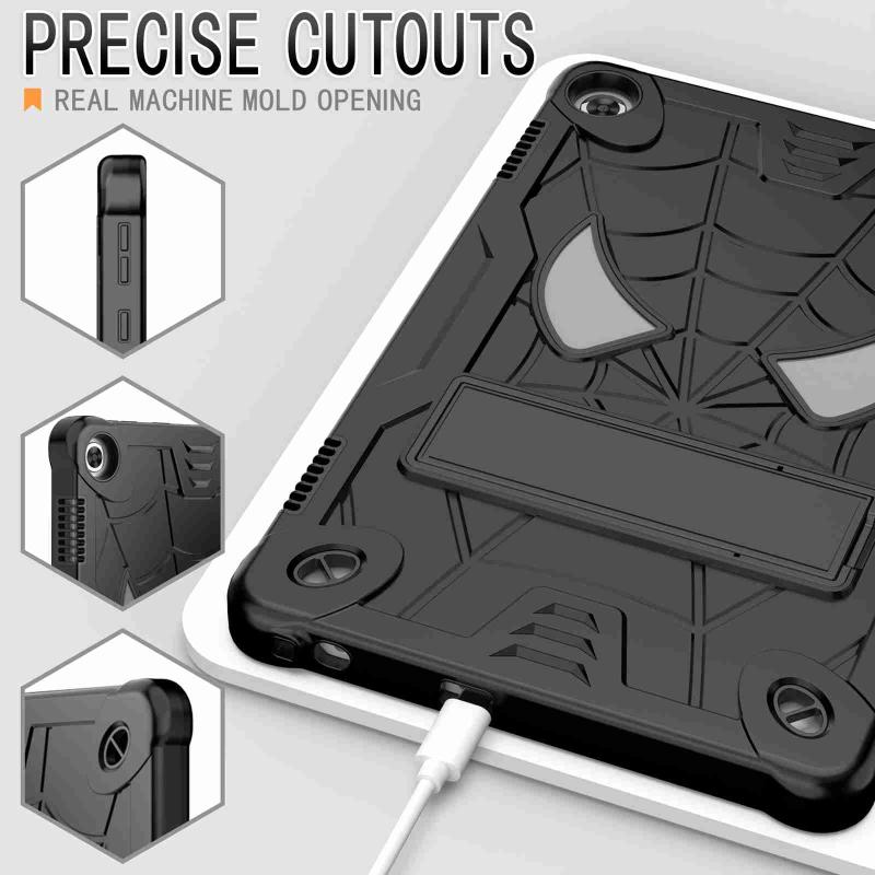 For Lenovo Tab M10 3rd Gen Spider Texture Silicone Hybrid PC Tablet Case with Shoulder Strap(Black)