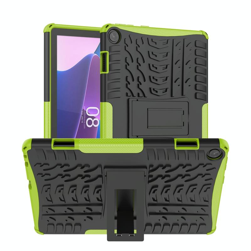 For Lenovo Tab M10 3rd Gen Tire Texture TPU + PC Tablet Case with Holder(Green)