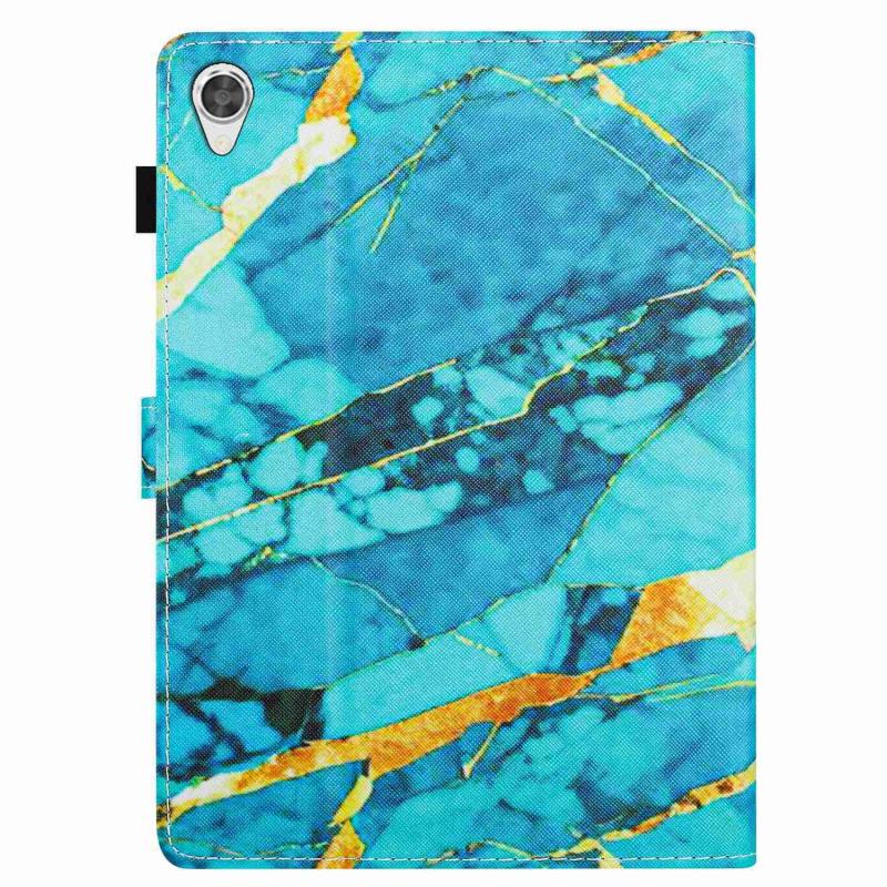 For Lenovo Tab M10 HD 2nd Gen Marble Pattern Stitching Smart Leather Tablet Case(Gold Blue)