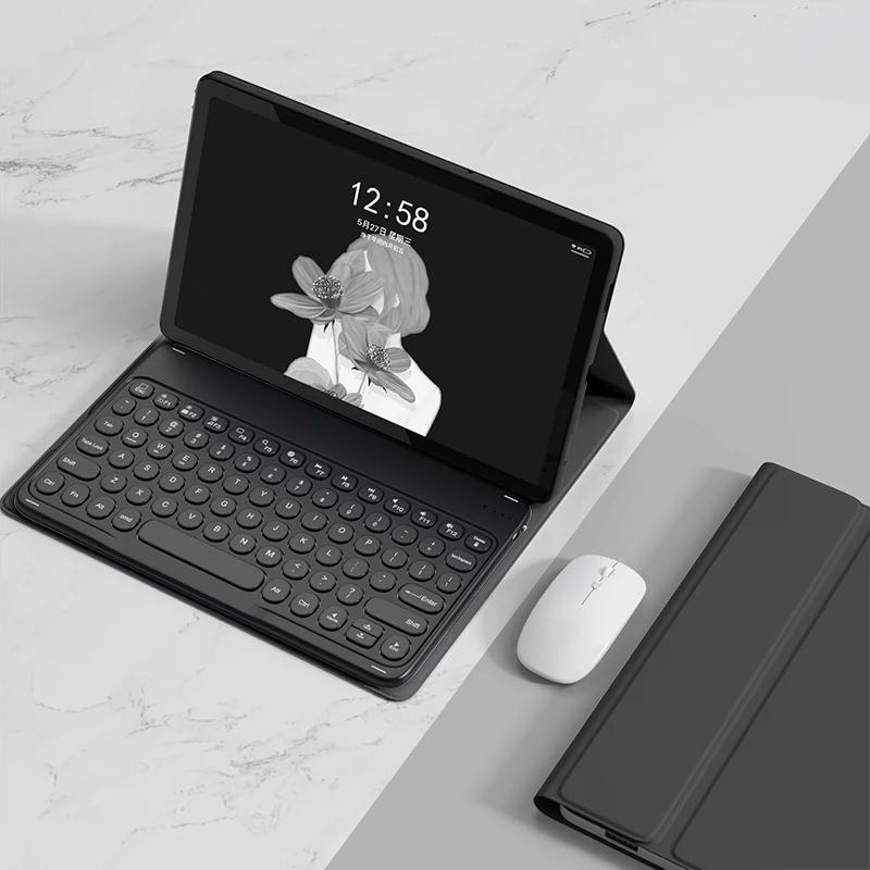 For Lenovo Tab M10 Plus 10.6 3rd Gen 2022 YM-LX106 Round Key Detachable Bluetooth Tablet Keyboard Leather Case with Mouse(Black)