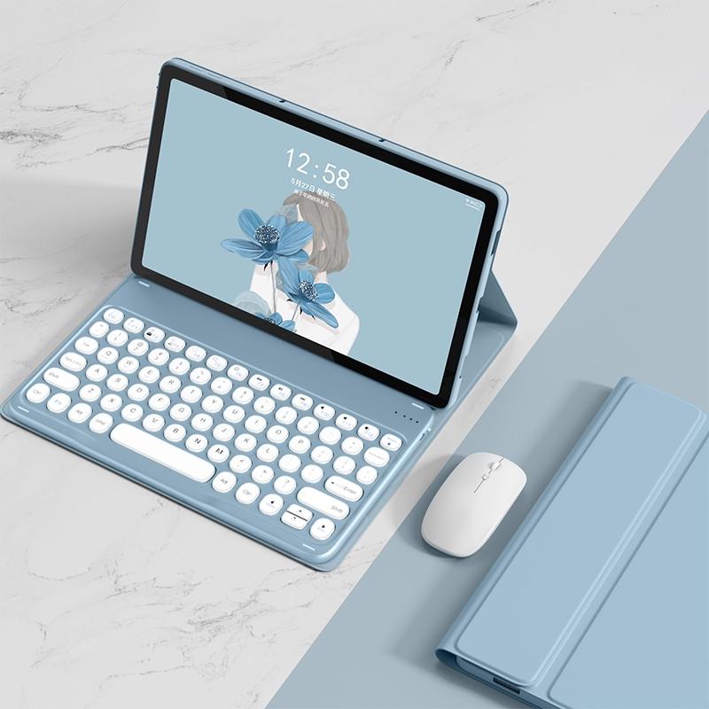 For Lenovo Tab M10 Plus 10.6 3rd Gen 2022 YM-LX106 Round Key Detachable Bluetooth Tablet Keyboard Leather Case with Mouse(Blue)