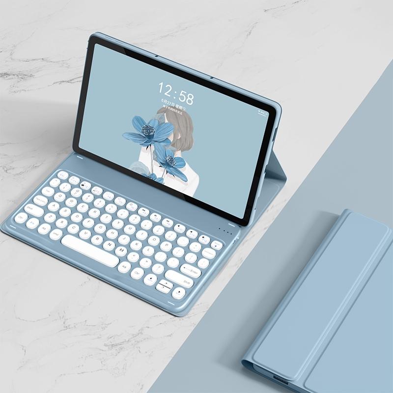 For Lenovo Tab M10 Plus 10.6 3rd Gen 2022 YM-LX106 Round Key Detachable Bluetooth Tablet Keyboard Leather Case without Mouse(Blue)