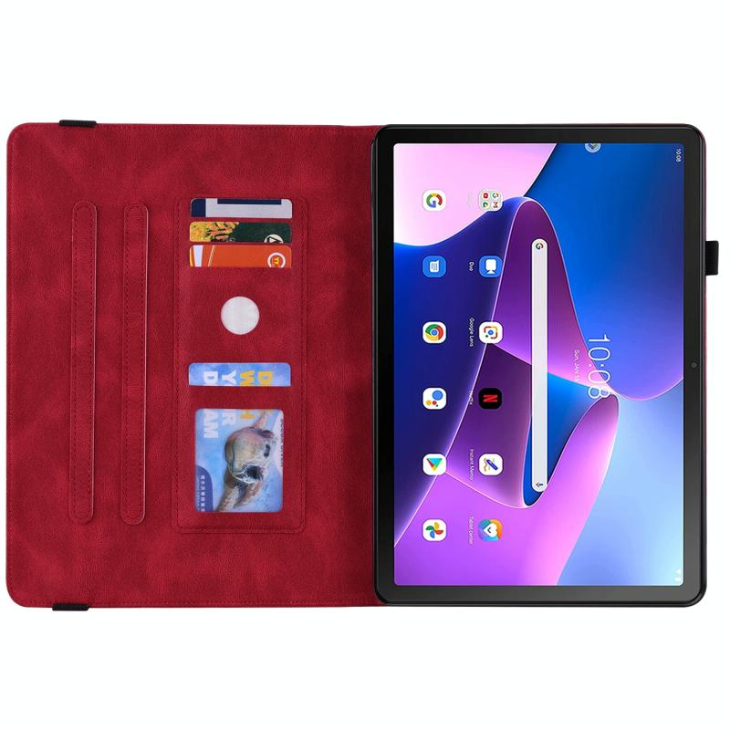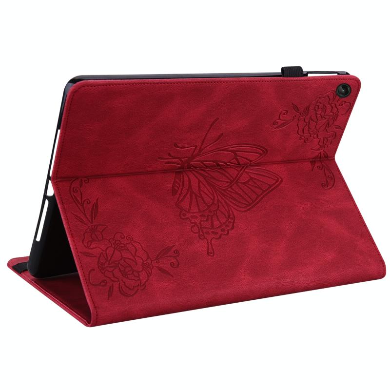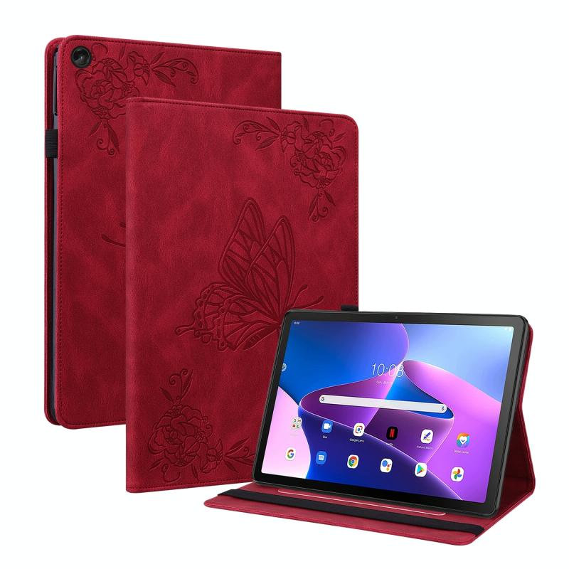 For Lenovo Tab M10 Plus 10.6 3rd Gen Butterfly Flower Embossed Leather Tablet Case(Red)