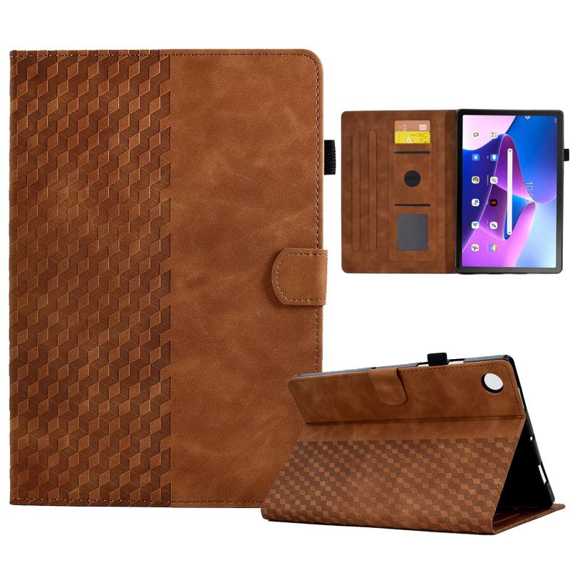 For Lenovo Tab M10 Plus Gen 3 Rhombus Embossed Leather Smart Tablet Case(Brown)