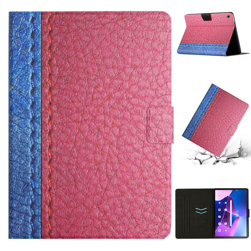 For Lenovo Tab M10 Plus Stitching Solid Color Smart Leather Tablet Case(Rose Red)