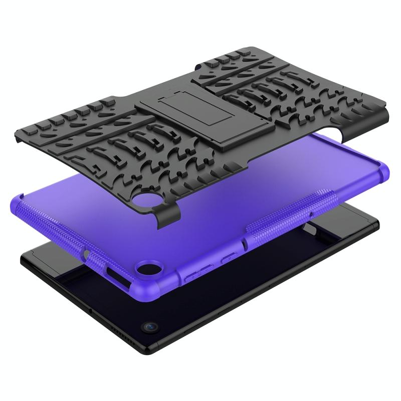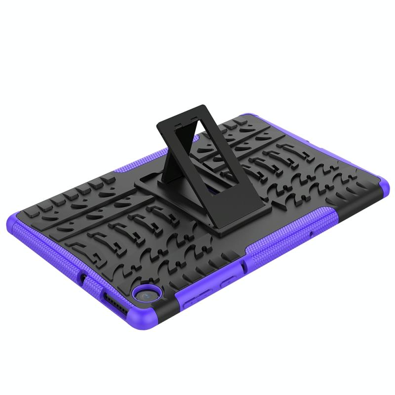 For Lenovo Tab M10 Plus TB-X606F Tire Texture Shockproof TPU+PC Protective Case with Holder(Purple)