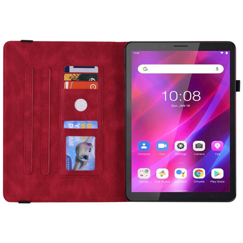 For Lenovo Tab M7 3rd Gen Butterfly Flower Embossed Leather Tablet Case(Red)