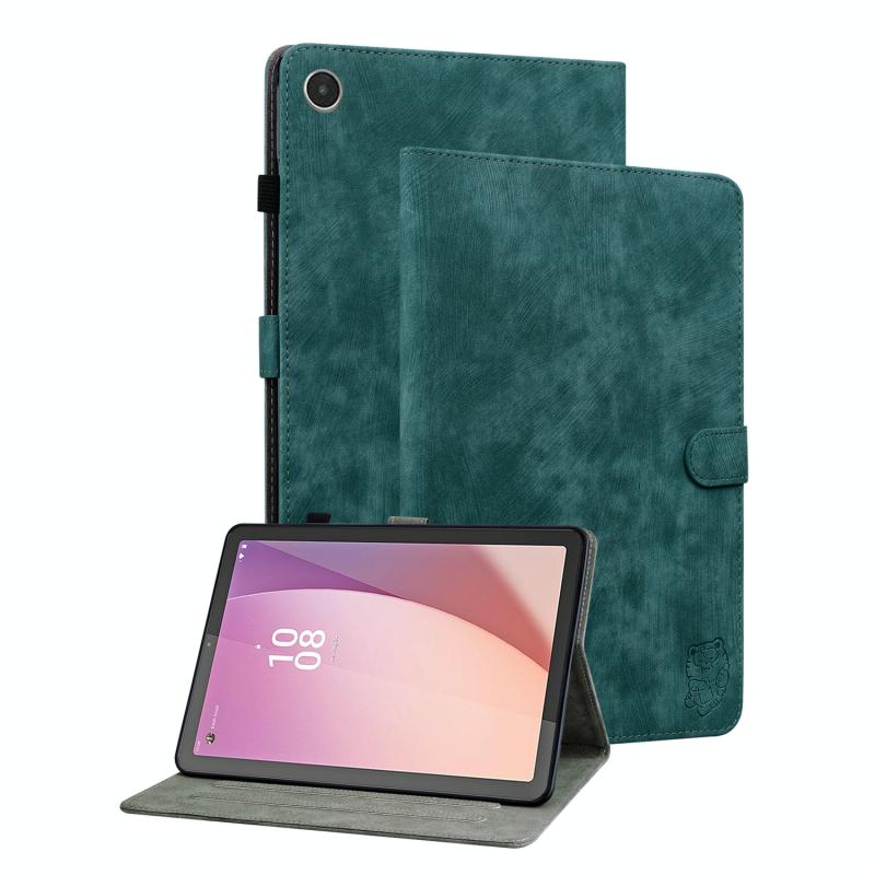 For Lenovo Tab M8 4th Gen TB-300FU Tiger Pattern Flip Leather Tablet Case(Dark Green)