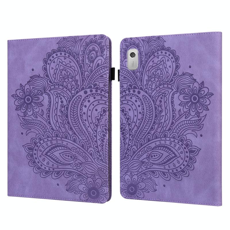 For Lenovo Tab M9 Peacock Embossed Pattern Leather Tablet Case(Purple)
