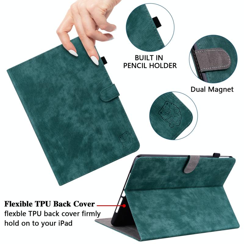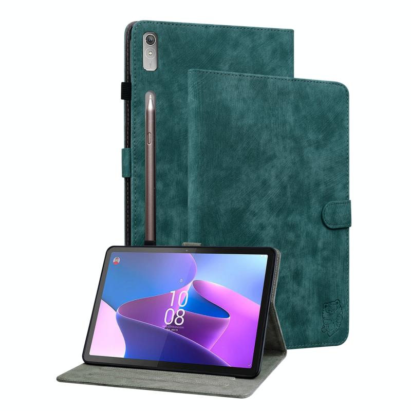 For Lenovo Tab P11 Pro Gen 2 11.2 Tiger Pattern Flip Leather Tablet Case(Dark Green)