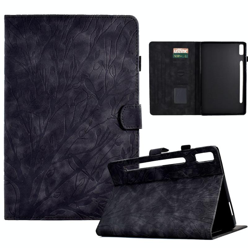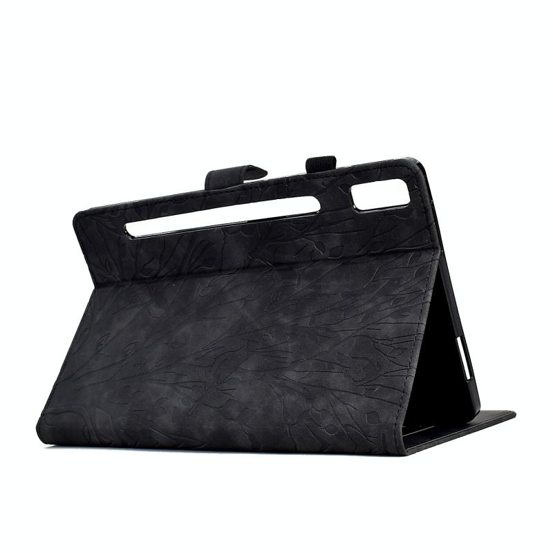 For Lenovo Tab P11 Pro Gen 2 Fortune Tree Pressure Flower PU Tablet Case with Wake-up / Sleep Function(Black)