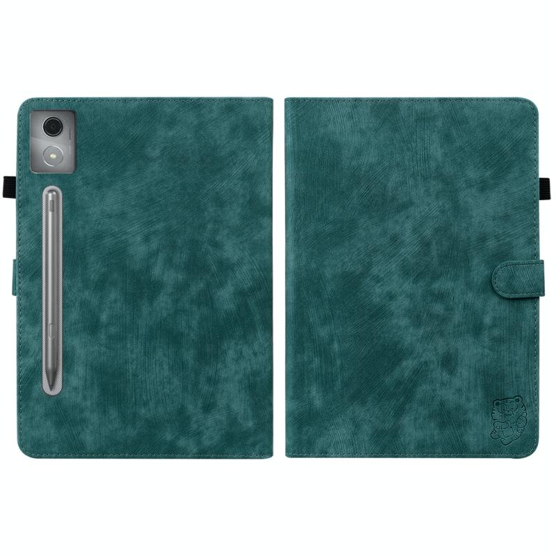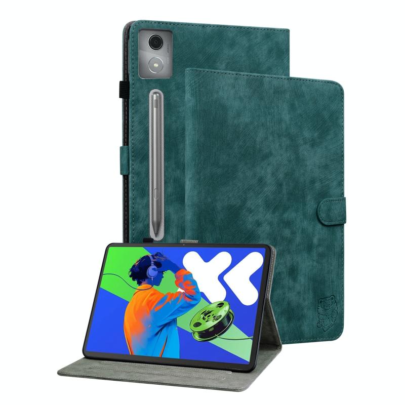 For Lenovo Tab P12 Pro 12.7 2025 Tiger Pattern Flip Leather Tablet Case(Dark Green)