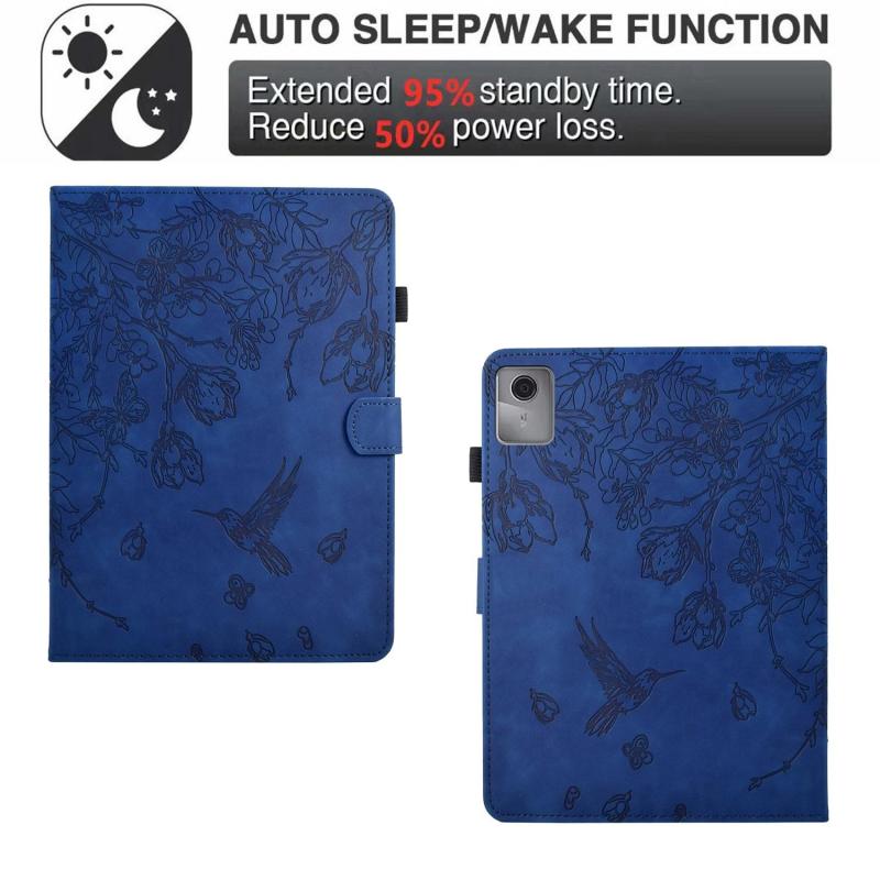 For Lenovo Xiaoxin Pad 11 2025 Flowers and Bird Embossed Smart Leather Tablet Case(Dark Blue)