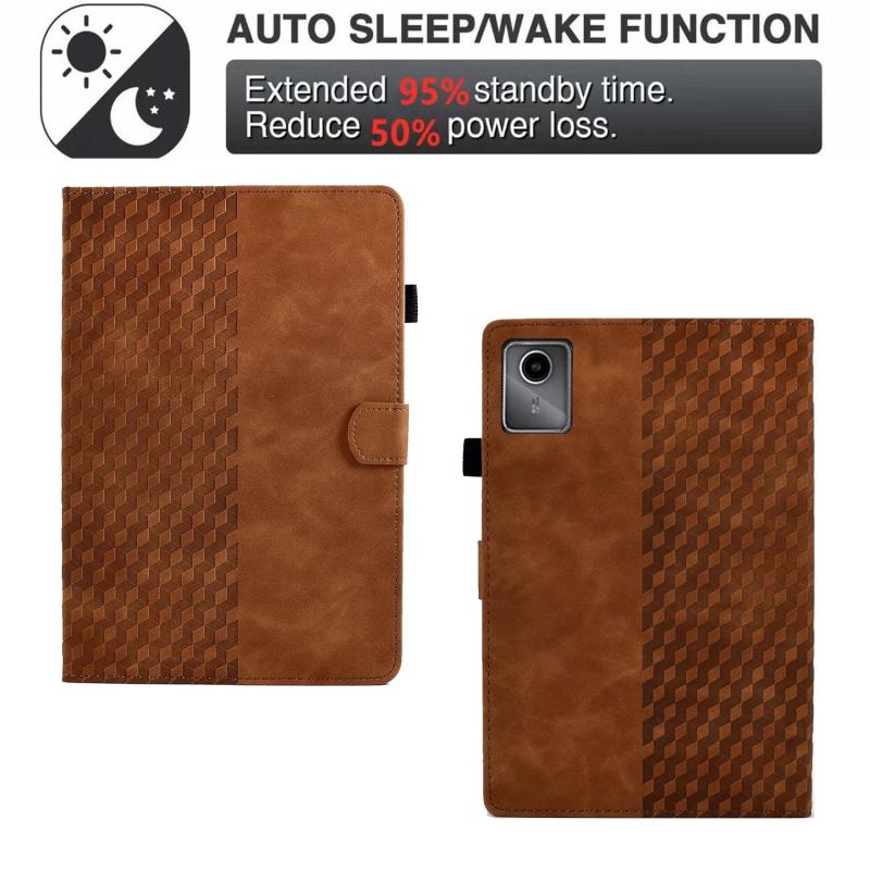 For Lenovo Xiaoxin Pad 11 2025 Rhombus Embossed Leather Smart Tablet Case(Brown)