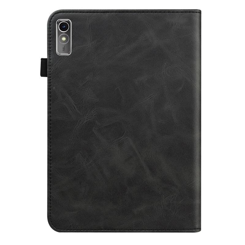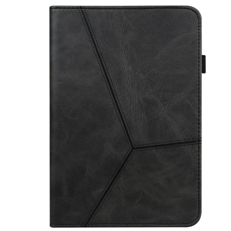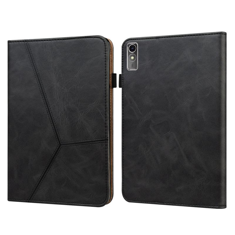 For Lenovo Xiaoxin Pad Pro 12.7 Solid Color Stripe Embossed Leather Tablet Case(Black)
