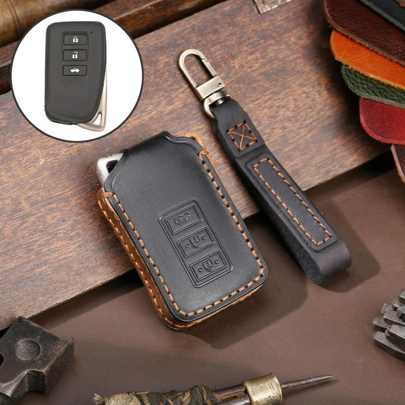 For Lexus 3-button Hallmo Car Cowhide Leather Key Protective Cover Key Case(Black) (Hallmo)