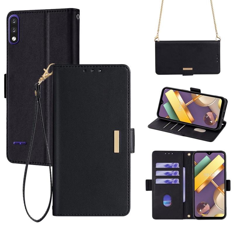 For LG K22 Crossbody Chain Leather Phone Case(Black)