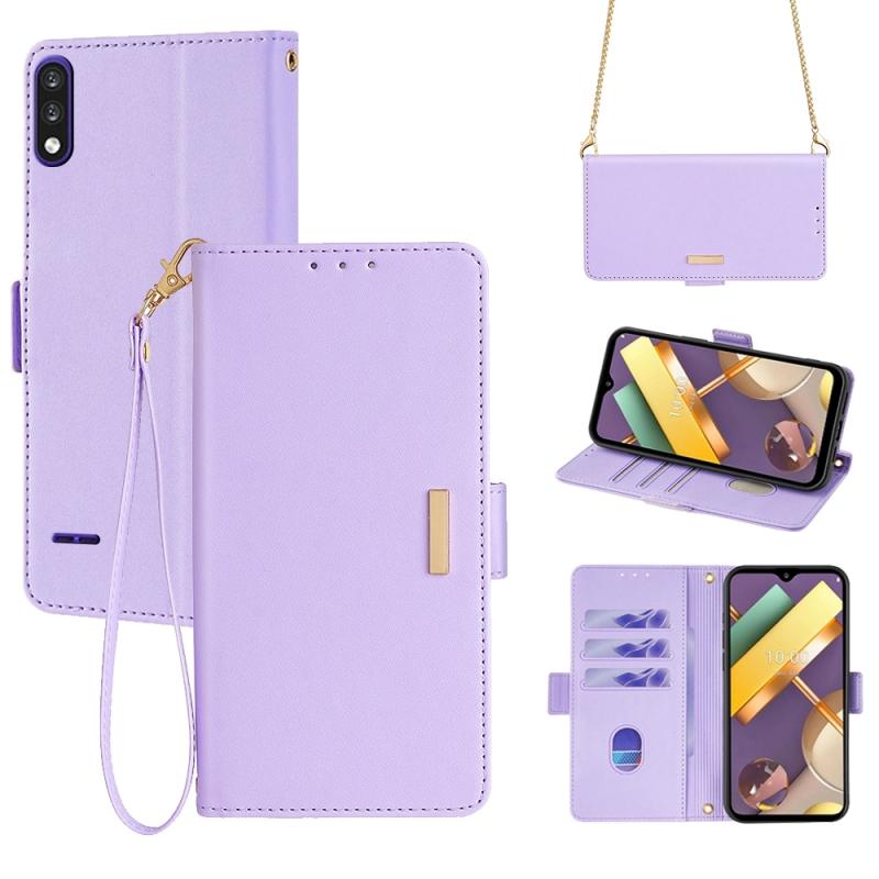 For LG K22 Crossbody Chain Leather Phone Case(Purple)