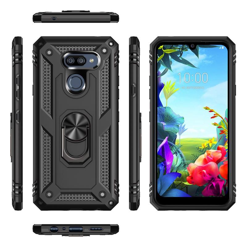 For LG K40S Shockproof TPU + PC Protective Case with 360 Degree Rotating Holder(Black)