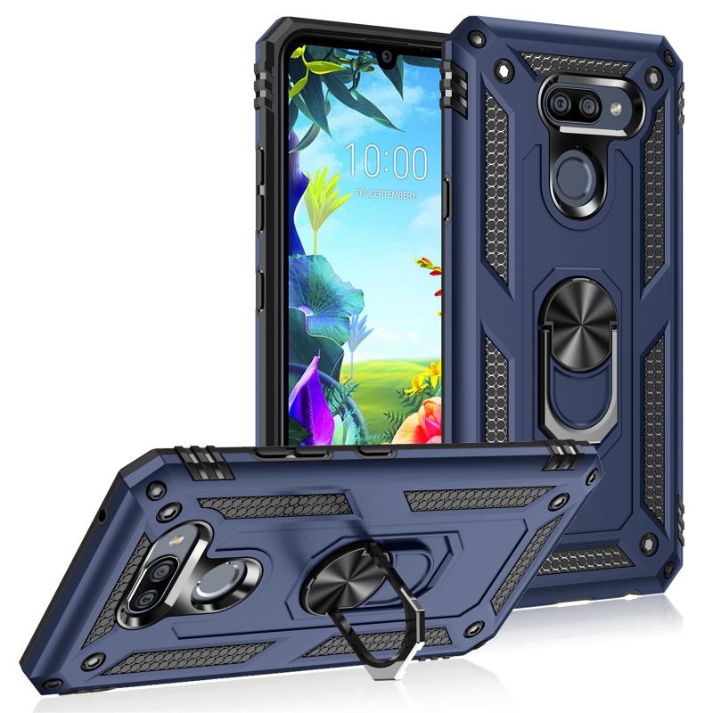 For LG K40S Shockproof TPU + PC Protective Case with 360 Degree Rotating Holder(Blue)