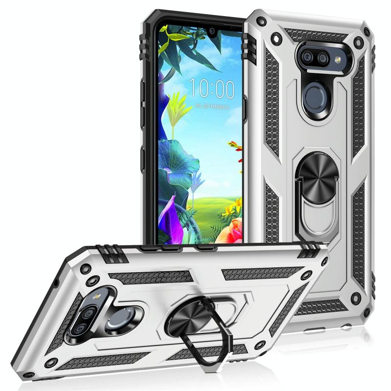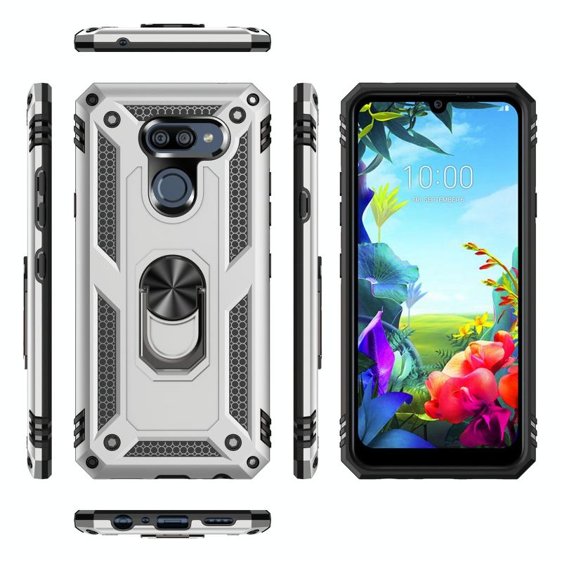 For LG K40S Shockproof TPU + PC Protective Case with 360 Degree Rotating Holder(Silver)