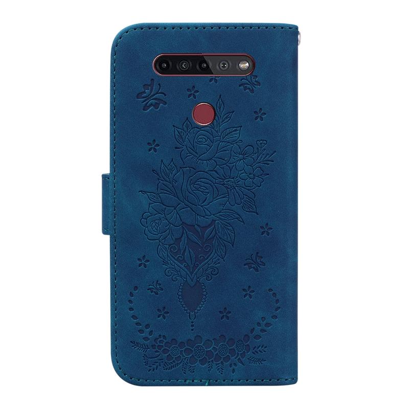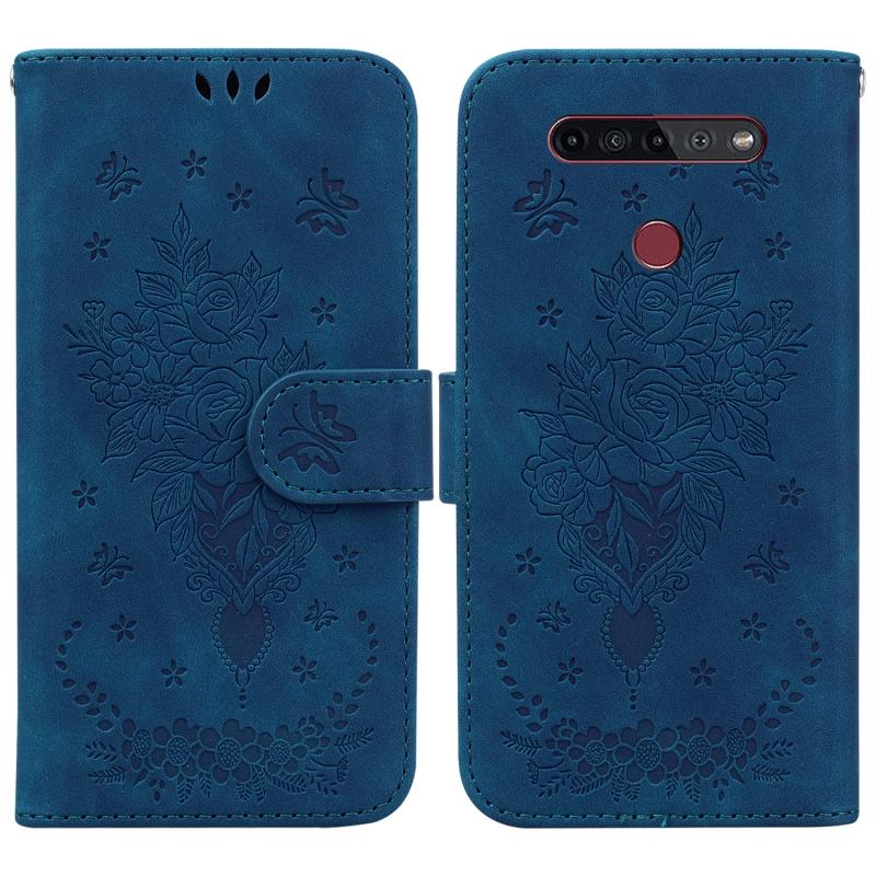 For LG K41S / K51S Butterfly Rose Embossed Leather Phone Case(Blue)
