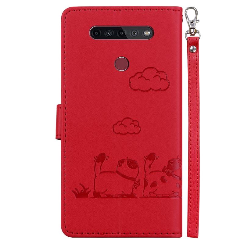 For LG K41S / K51S Cute Cats RFID Leather Phone Case(Red)