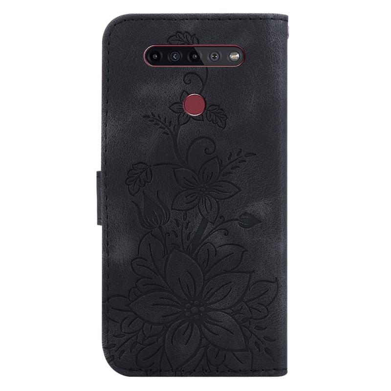 For LG K41S / K51S Lily Embossed Leather Phone Case(Black)