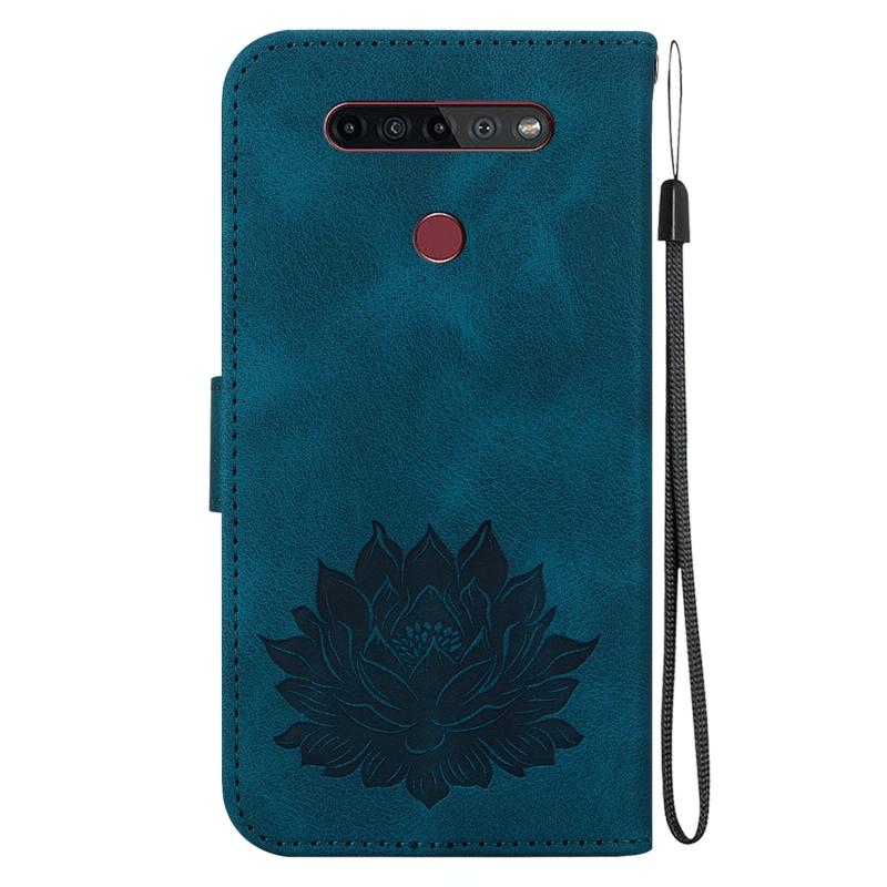 For LG K41S / K51S Lotus Embossed Leather Phone Case(Dark Blue)