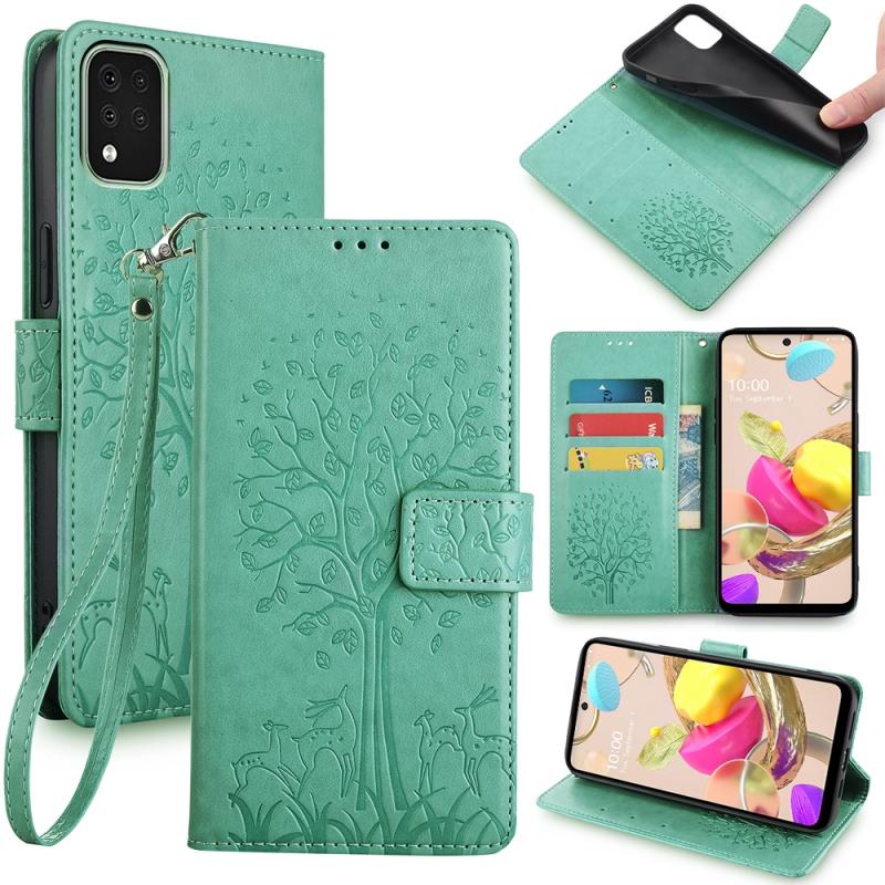 For LG K42 Tree & Deer Embossed Leather Phone Case(Green)