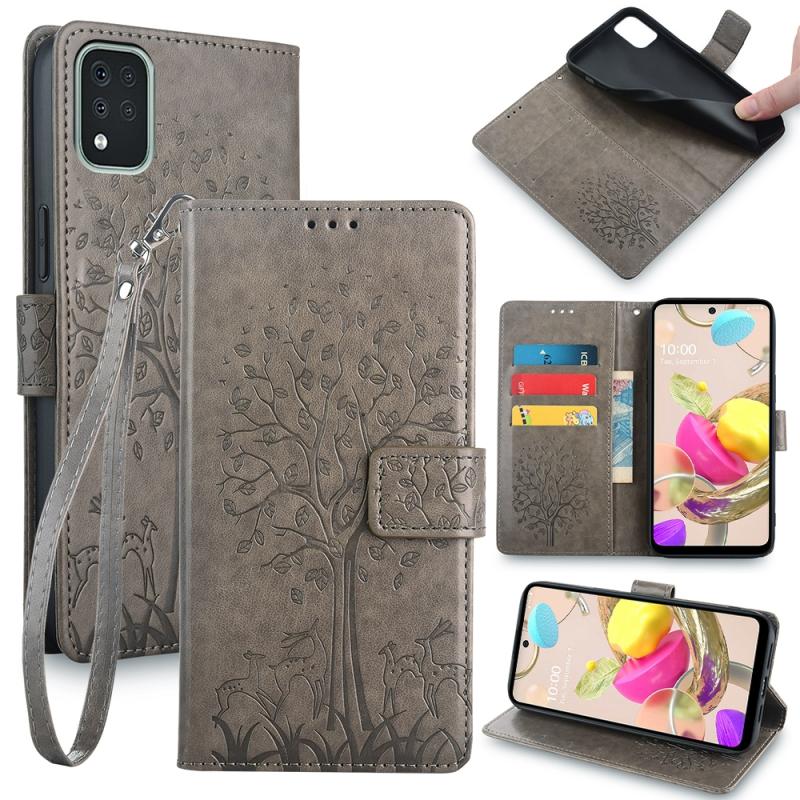 For LG K42 Tree & Deer Embossed Leather Phone Case(Grey)