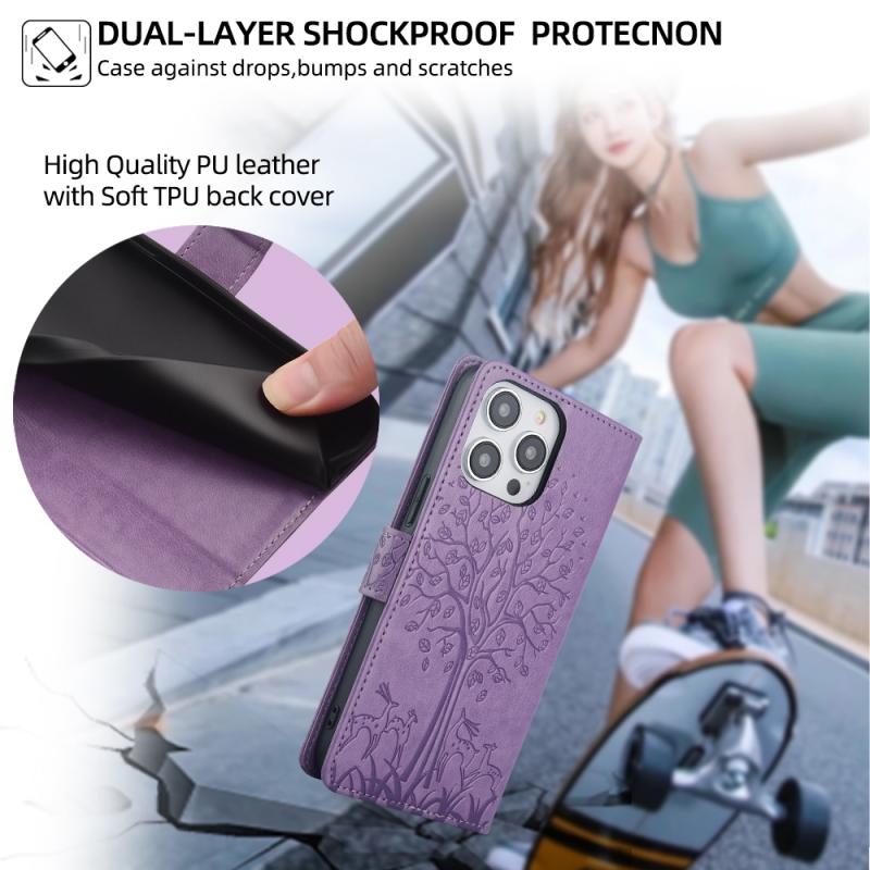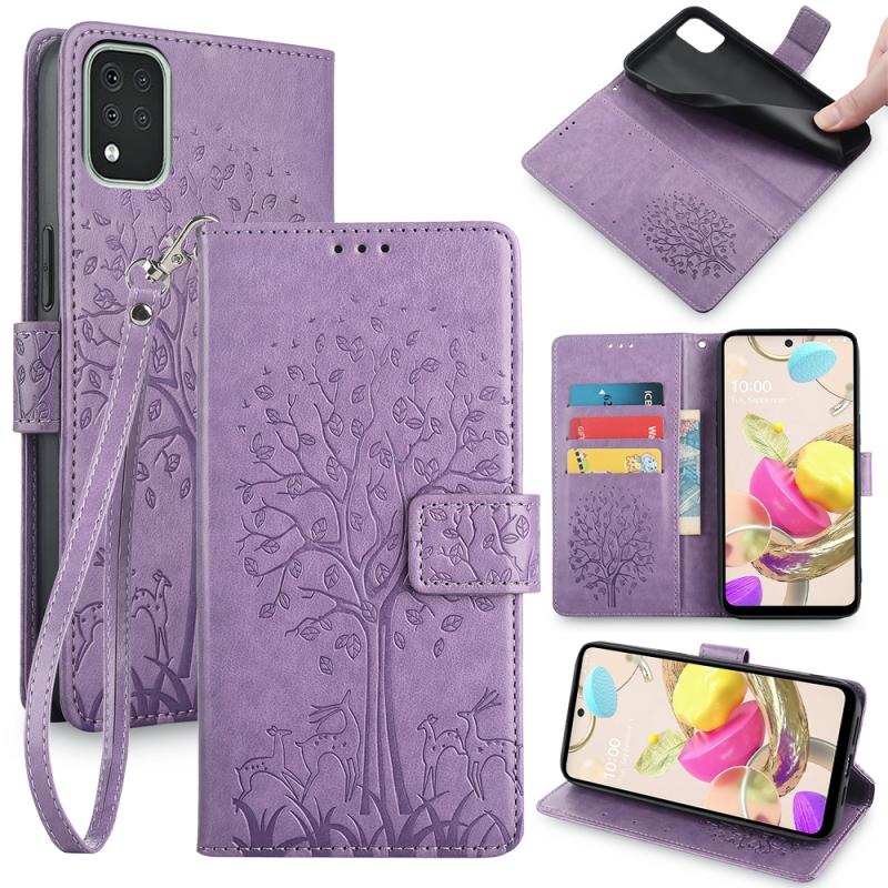 For LG K42 Tree & Deer Embossed Leather Phone Case(Purple)
