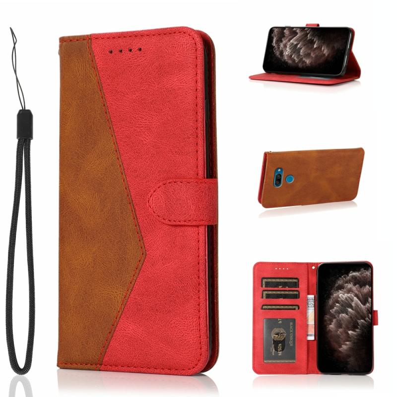 For LG K50 / Q60 Dual-color Stitching Leather Phone Case(Brown Red)