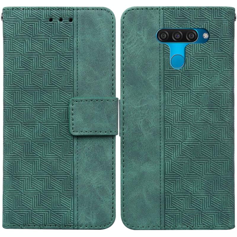 For LG K50 / Q60 Geometric Embossed Leather Phone Case(Green)