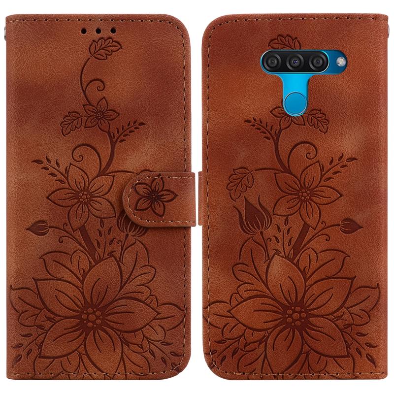 For LG K50 / Q60 Lily Embossed Leather Phone Case(Brown)