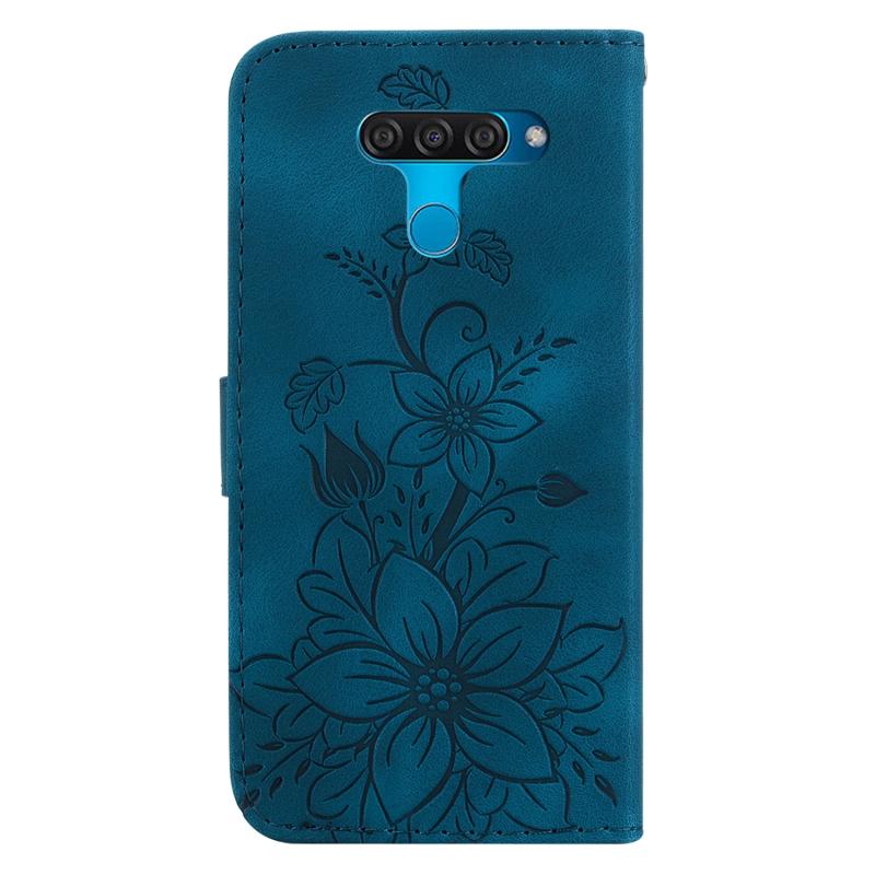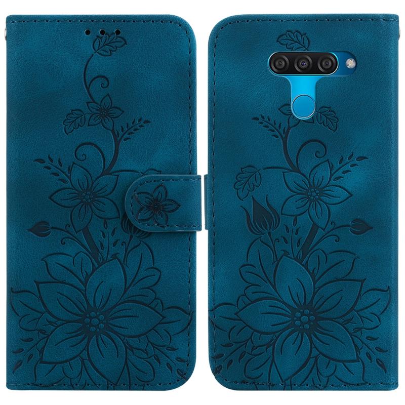 For LG K50 / Q60 Lily Embossed Leather Phone Case(Dark Blue)