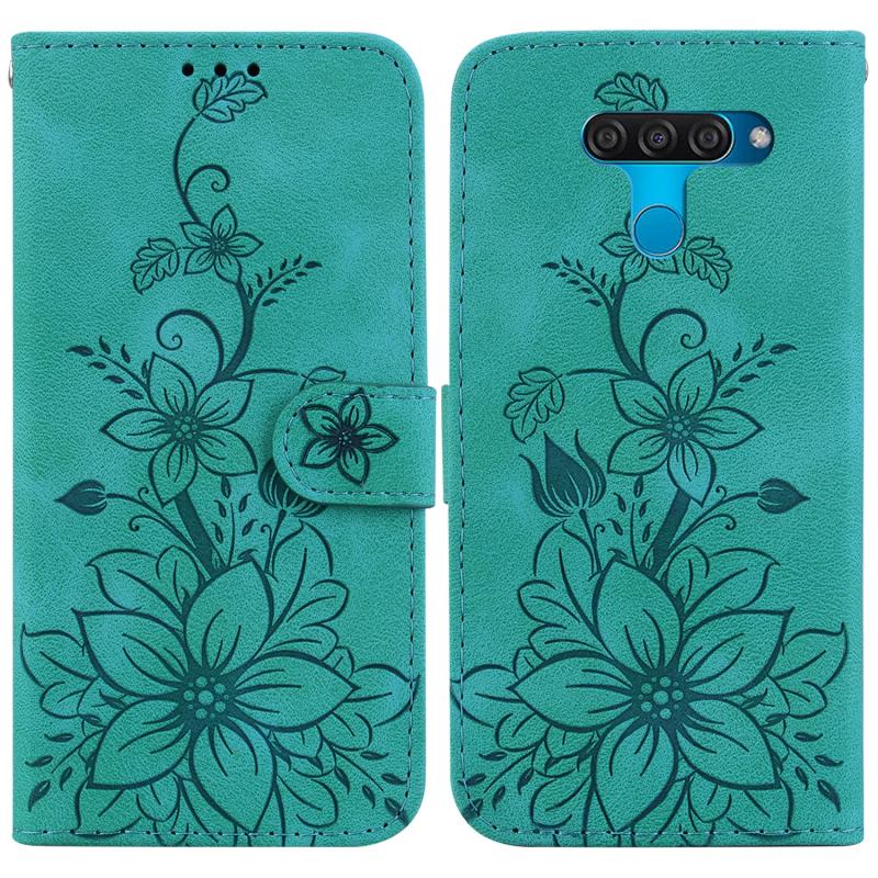 For LG K50 / Q60 Lily Embossed Leather Phone Case(Green)