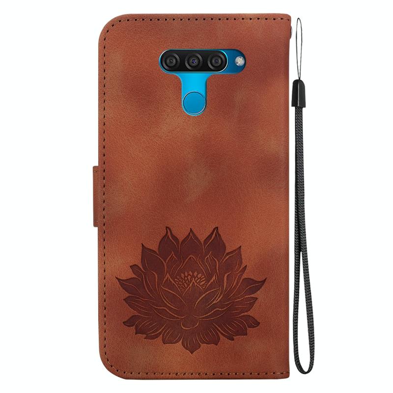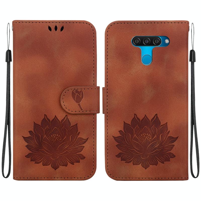 For LG K50 / Q60 Lotus Embossed Leather Phone Case(Brown)