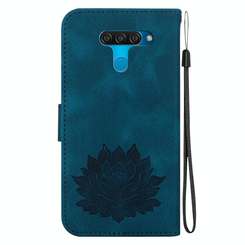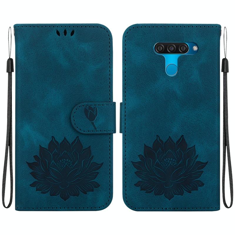 For LG K50 / Q60 Lotus Embossed Leather Phone Case(Dark Blue)